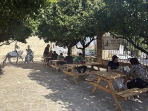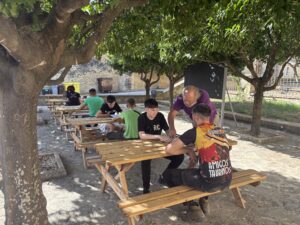 Este espacio ha sido creado a través de un Proyecto Educativo cuyo objetivo ha sido recrear un espacio en nuestro patio exterior como espacio de aprendizaje, donde el profesorado puede llevar el aula al exterior, fomentando el trabajo colaborativo, la lectura y el aprendizaje al aire libre.