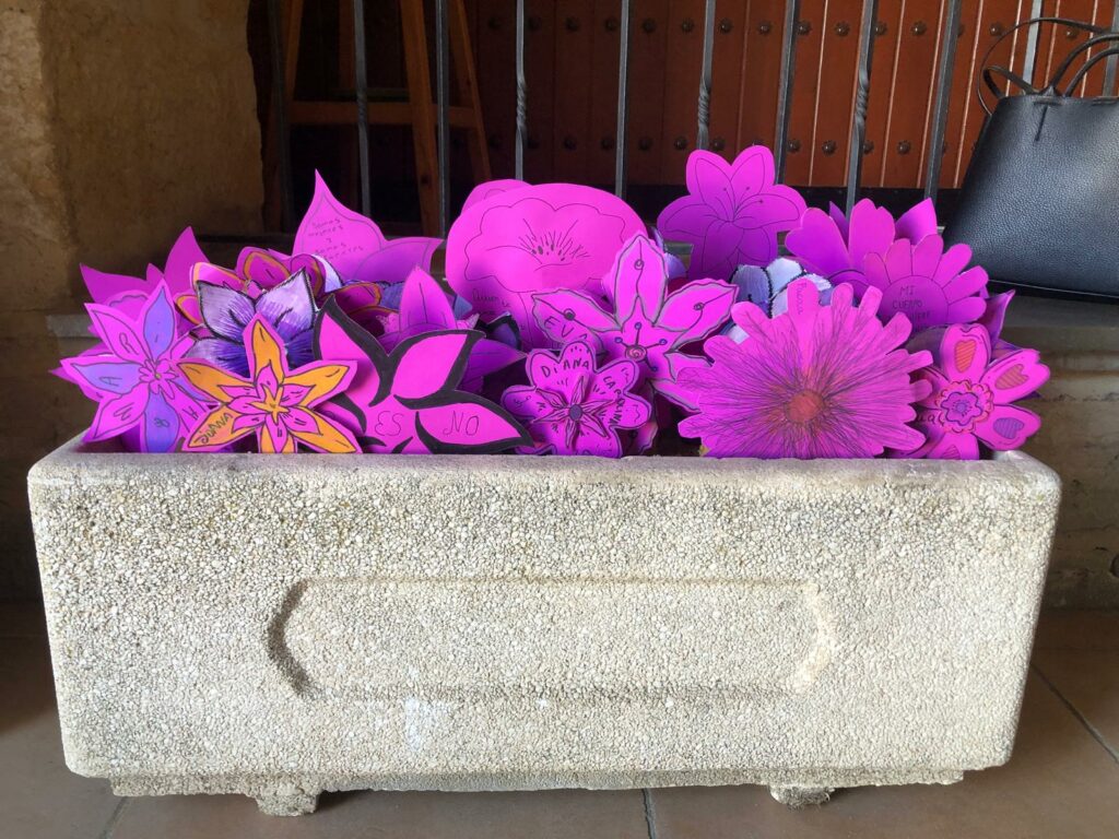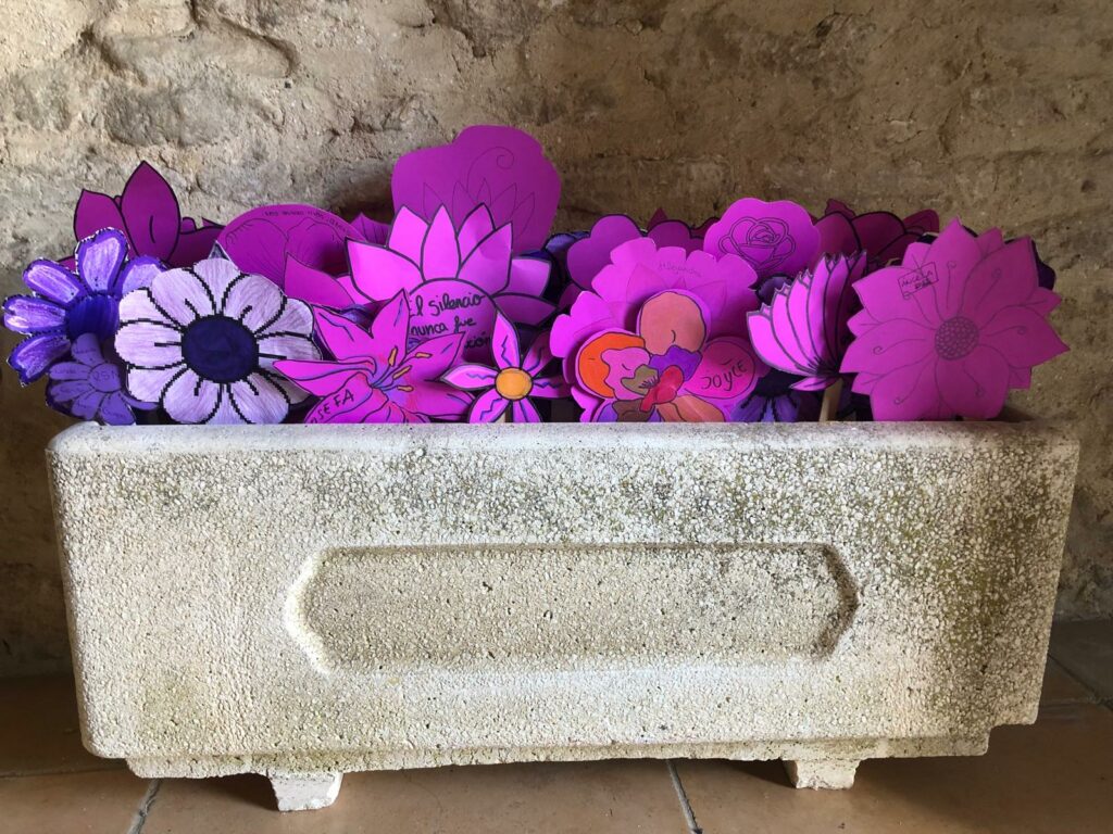 La actividad ha consistido en la elaboración de flores a modo de ofrenda. Cada flor simbolizaba una vida arrebatada, una historia truncada y el dolor de sus familias y de toda la sociedad.